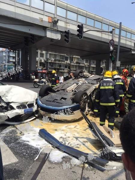 上海中山南路一宝马与警车相撞 两名警员受伤(图)