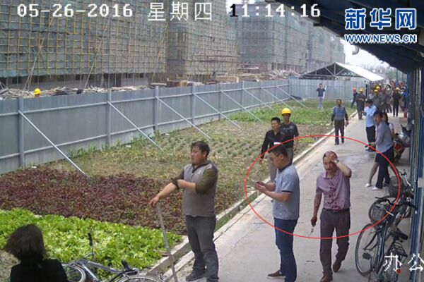 视频截图显示,伤者陈刚手捂住头,满脸是血。