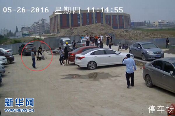 报料人提供两段视频是今年5月26日事发工地监控拍摄到的。第一段视频时长4分钟左右,视频显示,从11点12分开始,在一处建筑工地的活动板房前,有几名年轻男子在用砖块砸二楼窗户玻璃,随后便有人下来阻止,二、三十名年轻男子便掏出棍棒,开始打成一片,场面非常混乱。11点14分,一名被打得男子手捂住头,满脸是血。在该段视频中,一位身穿黑色外套的老年女子也出来阻止,被多人打倒在地,其中一男子甚至举起旁边的自行车砸向倒地的老年女子。工地的几名工人过来拉架,也被这群人用棍棒围殴,吓得退了回去。