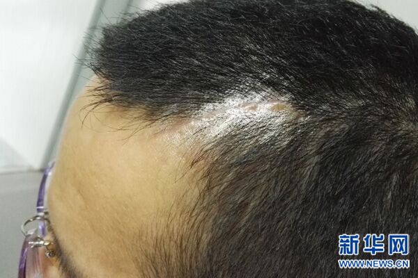 被打者陈刚头部伤口6.5厘米,清晰可见。