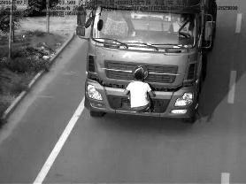 日前,@榆林交警官方微博发布了这样一张照片,照片上一名男子双手扒在一辆货运车车头车牌前,根据信息显示,这一幕发生在榆林吴堡县沿黄公路306公里处,时间为2016年7月28日上午6时07分,当时,这辆货运车的时速为20km/h,而此地限速为50km/h。