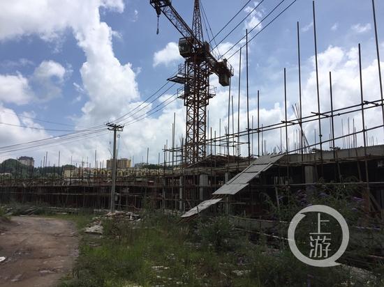 在苏马荡林立的小区中,上游新闻-重庆晨报记者发现还有多个项目已经停工,出现烂尾迹象。在迎宾大道上,记者看到怡雅苑和山水青城两个项目已经被围墙包围,里面的工地修建了一半,塔吊孤零零地矗立在工地上,暂时没有复工迹象。