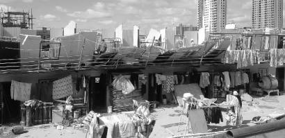 工棚宿舍房盖被掀飞 本组图片 新文化记者 唐奇 摄