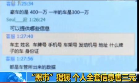 一个叫“诚信数据”的人主动向记者兜售车主信息,豪车车主标价400元一万条信息,普通车车主300元一万条。“诚信数据”为了证明自己的“诚信”,主动给记者发过来多条车主信息验货,包括车主的姓名、车牌号、手机号、车架号、发动机号。拨打这些车主的手机后,记者发现这些信息全部是真实的。此人声称自己还出售个人全套信息,从身份证复印件、家庭成员、户口本复印件、到网络账户名都在其中,全套信息的价格是每套3元。