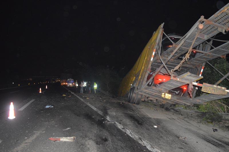 据参与救援的消防队员介绍,载着保时捷轿车的拖挂车,驾驶员的妻子正在驾驶室内睡觉,发生事故时,拖挂车驾驶员的妻子摔出驾驶室死亡,拖挂车驾驶员受伤。