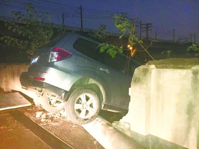 女司机为躲避小猫 慌乱中驾车撞穿围墙