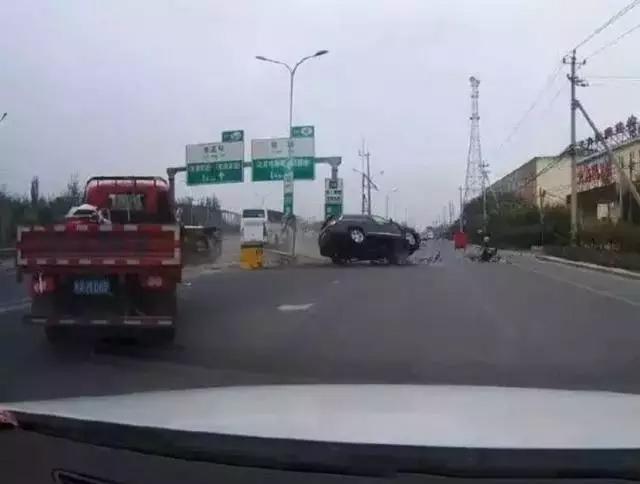 第三辆肇事的大卡车更别说了,看来也想冲闯红灯,根本没刹车的意图,被实道并线的小车晃了一下,发生侧翻。