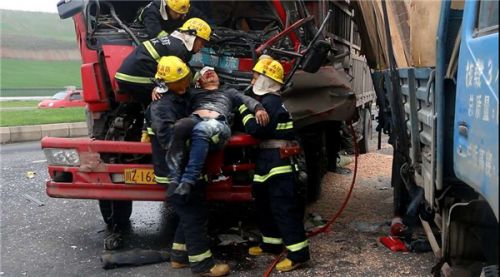 由于驾驶员双腿被卡严重,为了防止对其造成二次伤害。救援中,消防队员小心翼翼,细心破拆,经过近30分钟的紧张救援,被困司机被成功救出并由救护车送往医院救治。