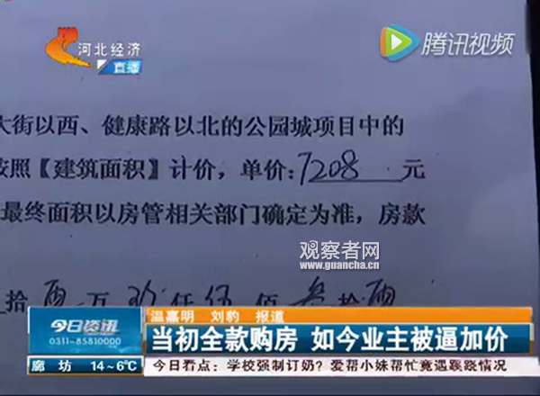 石家庄一开发商卖房4年后觉得亏了 每平加收6000元