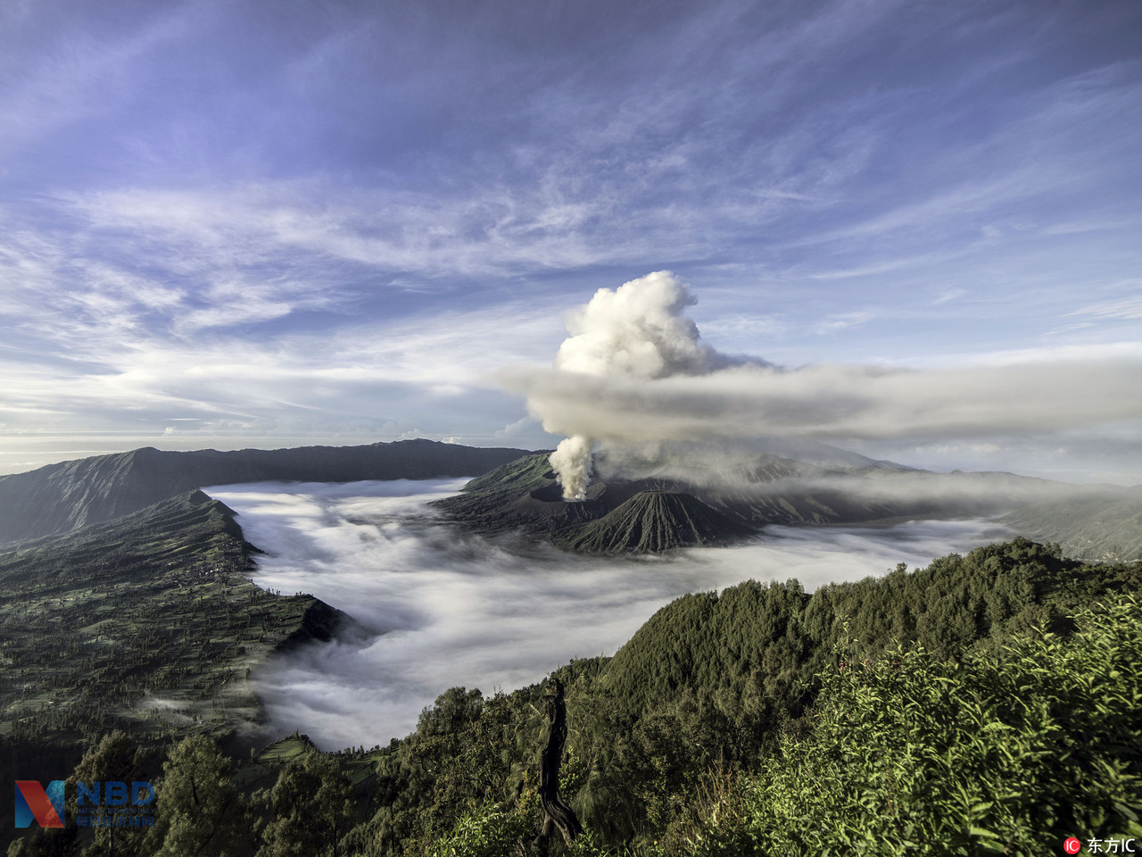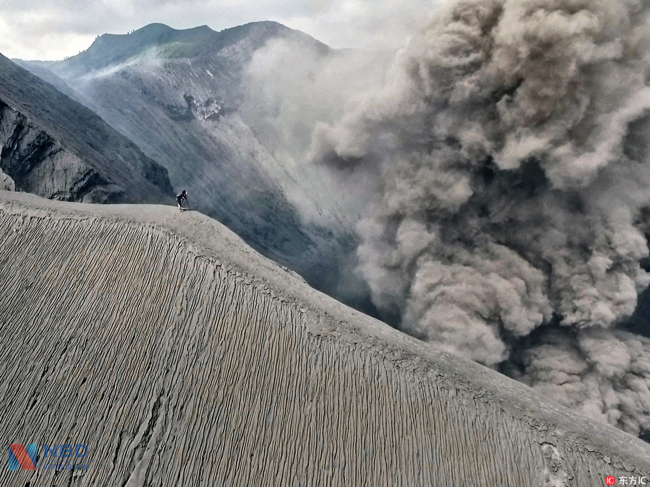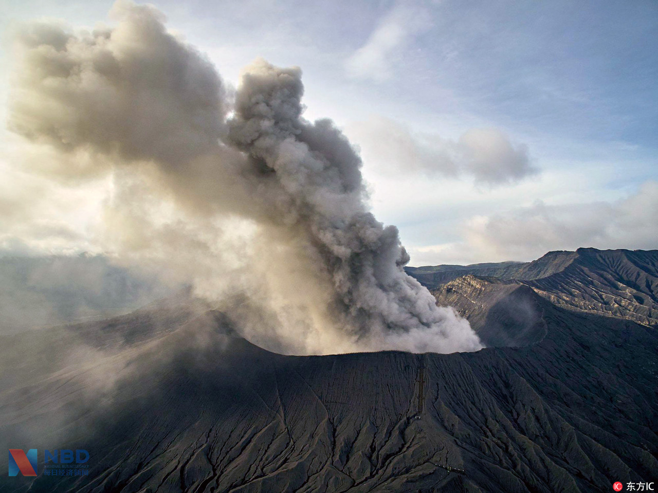 摄影师玩命拍婆罗摩火山喷发 烟尘翻涌场面震撼
