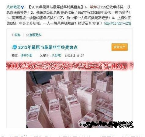 这些数据可信吗?华为公开资料显示,2014年华为营收2882亿元,净利润279亿元;2015年收入3950亿元,净利润369.1亿元。对于利润几百亿元的华为来说,要拿出1500亿元作为年终奖显然不!可!能!