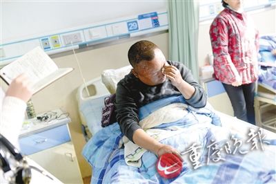 ▲病床上的郭洪勇伤心不已