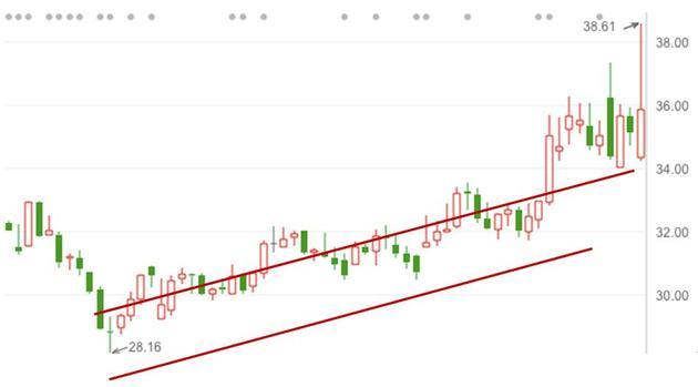 敲出周线来,股价是处在一波上涨过程中,并且已经突了前高,创下了历史新高。这周五收的周K要是能站上平台。那想象空间可就大了。