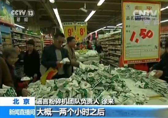 谣言粉碎机团队负责人徐来:我们就看到在上海的网友,怎么会突然一下就开始抢盐了,大概一两个小时之后,远在乌鲁木齐的人已经在那边说,我们这里出现了抢盐的队伍,我要去买盐了。