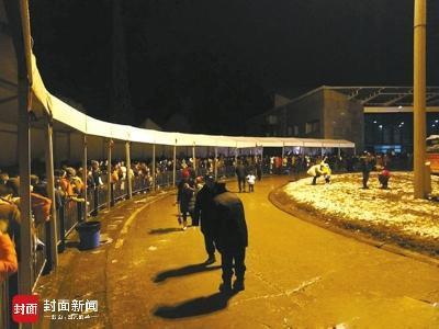 元旦当夜,游客长龙等候缆车下山