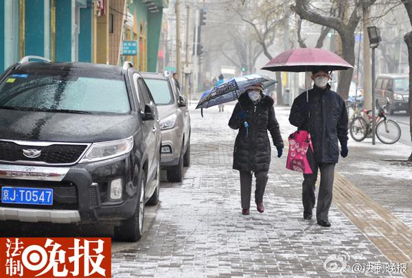 北京城区飘雪 气象局:出行尽量打伞 雪很脏
