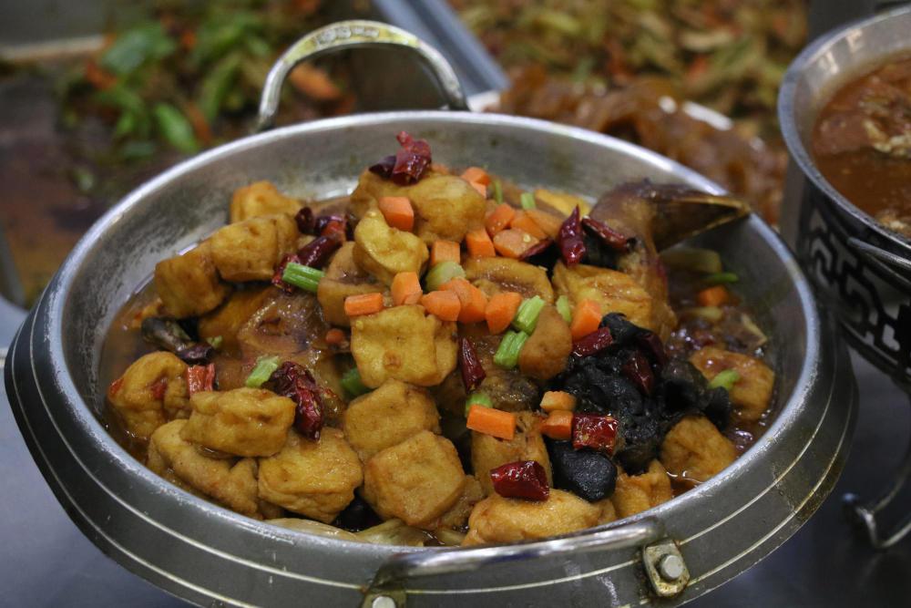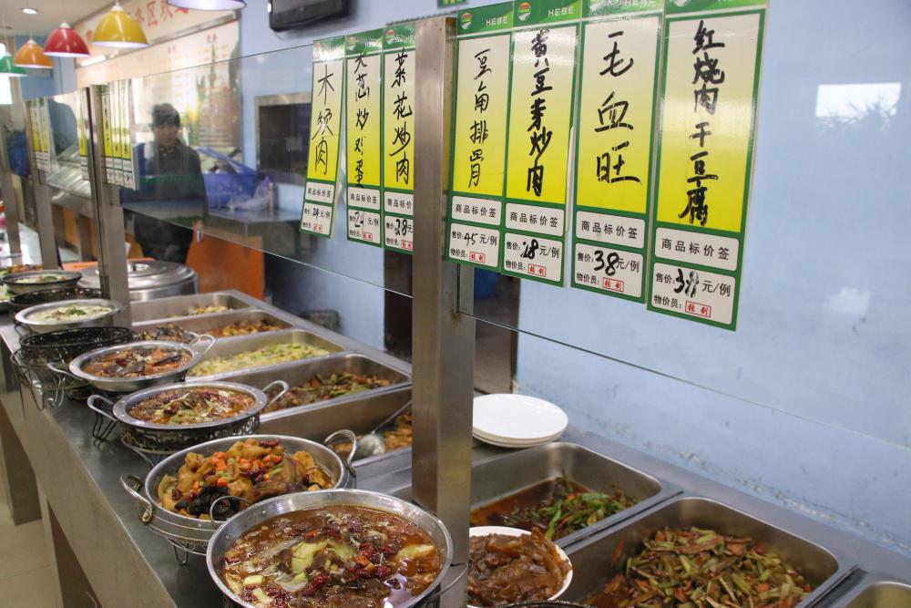 2017年1月15日,河北曹妃甸,一高速服务区餐厅的饭菜。春运期间,除了铁路这条返乡主线外,还有很多在外漂泊的人们选择自己驾车返回农村老家过年。自驾回家过年,在高速公路上长途跋涉,自然少不了光顾服务区的餐厅。